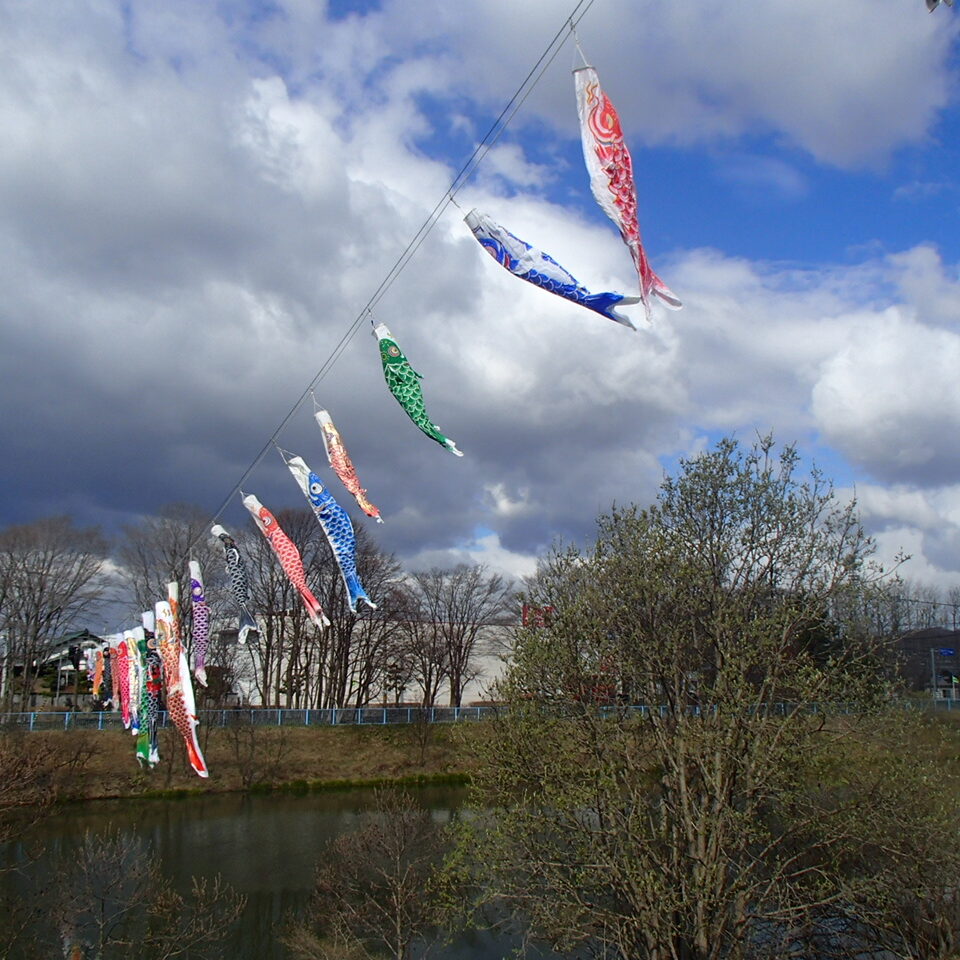 毎年こどもの日に向けて苫小牧川に鯉のぼりを挙げる活動を行っております。