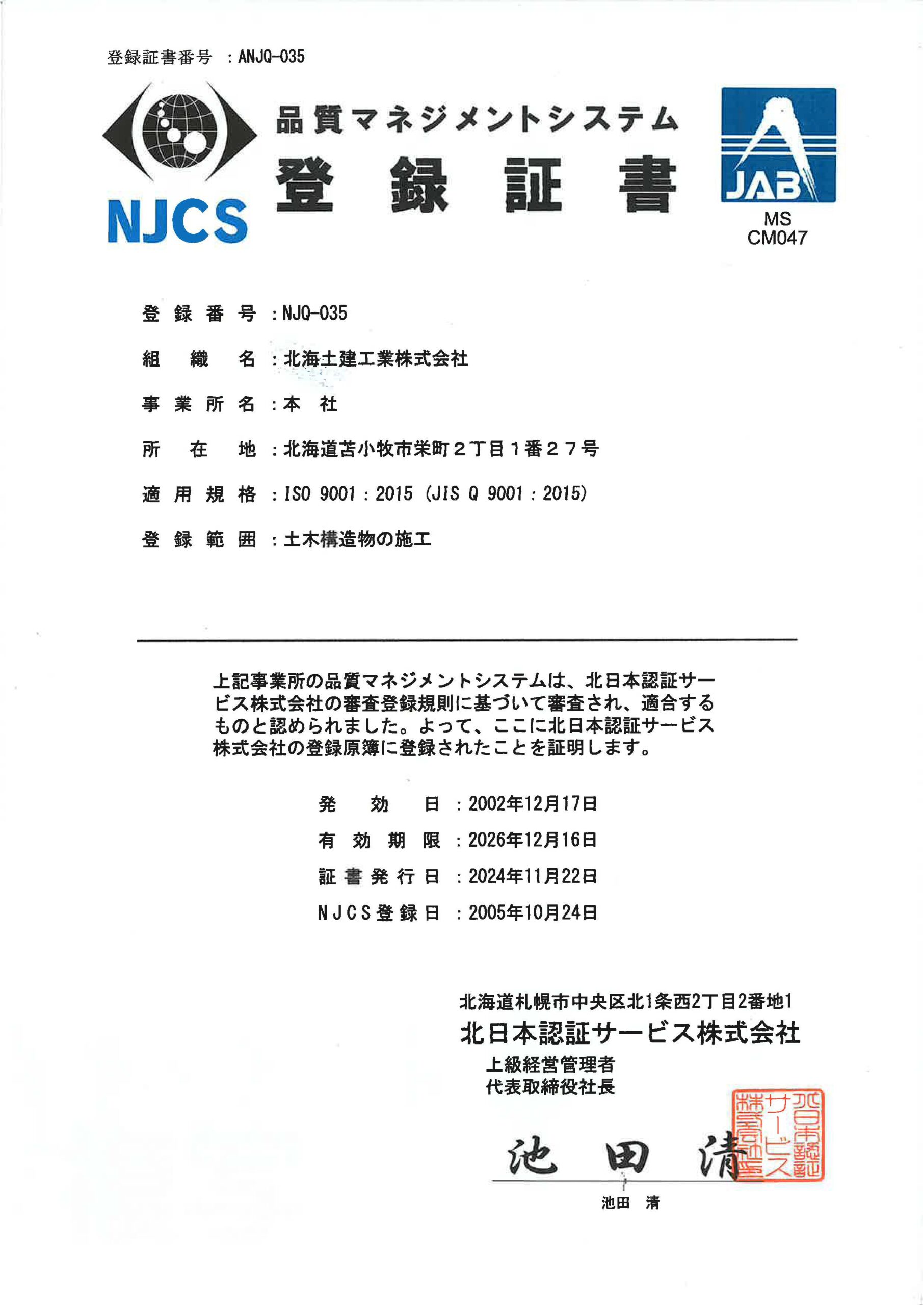 (JIS Q 9001:2015)